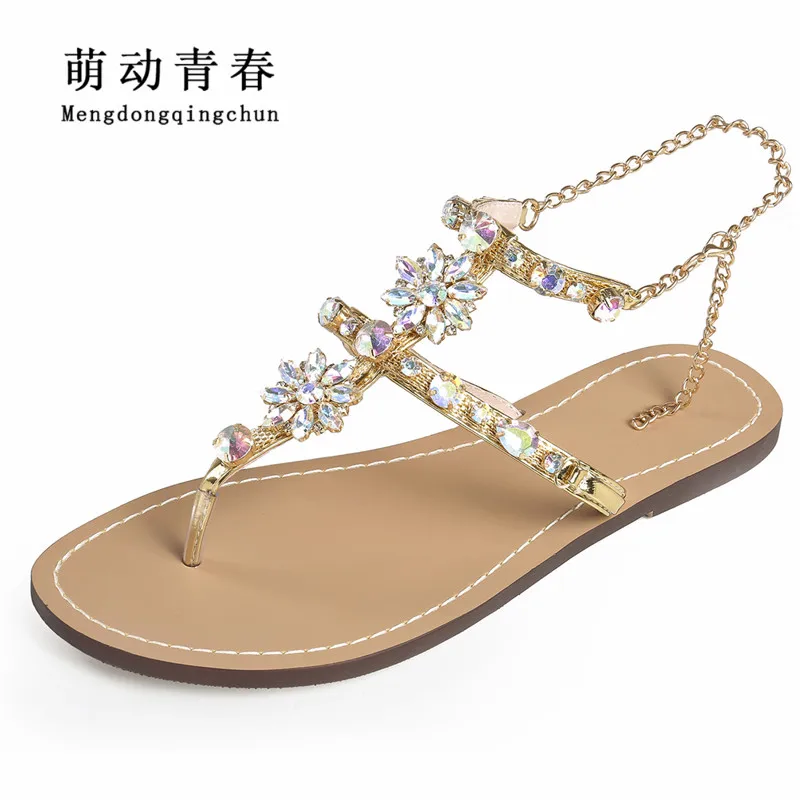 6 Color Woman Sandals Women Shoes Rhinestones Chains Thong Gladiator Flat Sandals Crystal Chaussure
