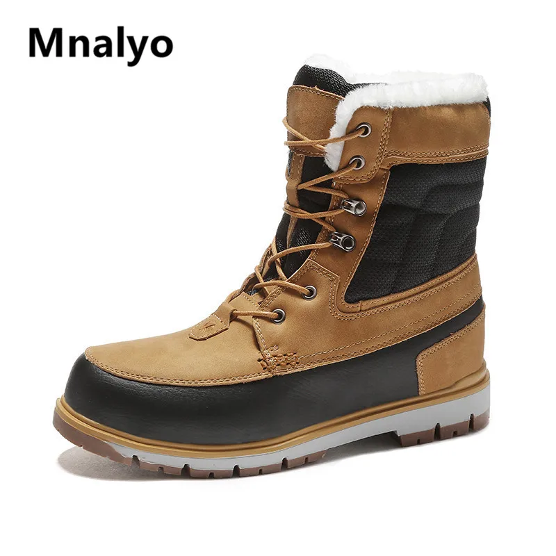 Mnalyo Super Warm Men's Winter Pu Leather Ankle Boots Men Winter Waterproof Non-slip Snow Boots Lei